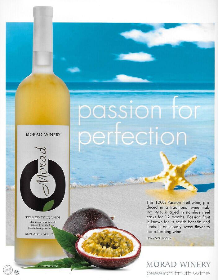 莫瑞德(MORAD)酒庄坐落在以色列卡梅尔山脚与美丽富饶的加利利相邻, 酒庄精选新鲜水果、蔬菜和香草,采用传统的酿酒方法与现代工艺相结合,酿制顶级的有犹太洁净食品认证的红酒和利口酒,莫瑞德百香果酒用生长在以色列的100% 百香果酿制,百香果的芳香(香蕉、菠萝、柠蒙、草莓、番桃、石榴等多种水果的浓郁香味) 与琥珀色酒体完美结合尽显该酒的高贵与典雅。