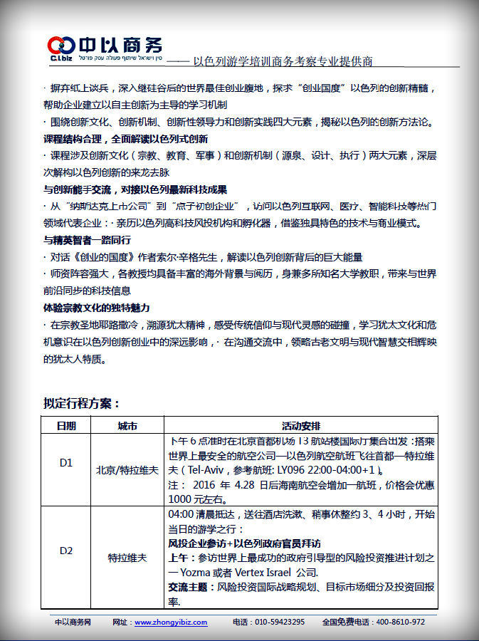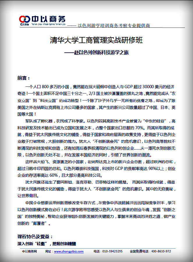 —— 以色列游学培训、商务考察专业提供商
