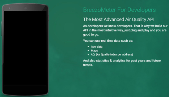 以色列BreezoMeter公司想为人们带来一个实时空气污染物地图,并且量化自我运动到另一个水平。BreezoMeter公司的任务就是改善全世界数十亿人的健康检测水平,提供精确的空气质量数据,让消费者和企业可以在一个简单的、直观的和可操作的格式中读懂空气健康数据。