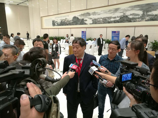 【15:06】对接现场,宗庆后接受媒体采访。