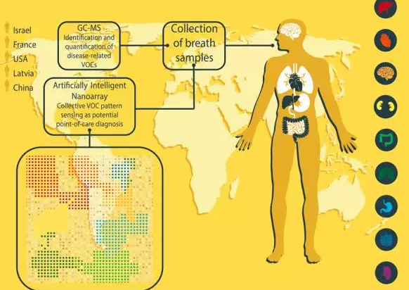对于传感器分析呼吸特征,检测和分类各种疾病时的效率,研究人员也进行了评估。为了验证系统的可靠性,研究人员也检测了影响样本组成的各种因素(例如性别、年龄、吸烟习惯和地理位置),发现这些影响可以忽略不计,不会影响到阵列的灵敏度。