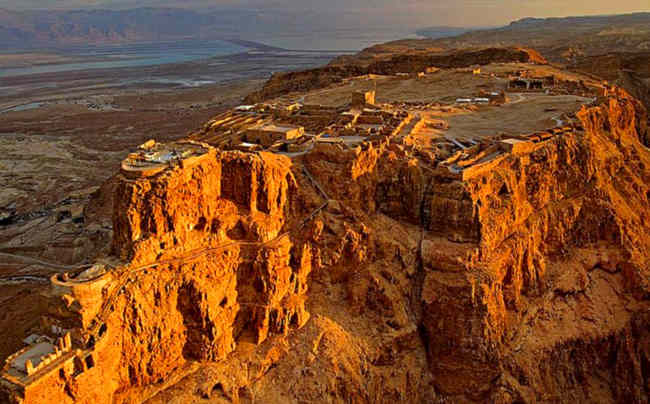 2000多年前,犹太国王希律为求一旦战争爆发时能自保,选中了距离耶路撒冷以南64公里、位于沙漠中央一座300米的高山,并在这个与世隔绝的天堑里修筑了一个一夫当关、万夫莫开的马萨达城堡。这座城堡的设计吸收了当时流行的希腊风格,在外围筑起了1500米长的双层高墙,上面建有38个10米高的碉堡。希律王还命人盖起了一排排巨大的仓库,储备了充足的粮食和武器,还兴建了水利工程,在城堡中央建成了12个蓄水池,每个容量高达4000立方米,以备城中人民使用。为了满足贵族的享乐,在这个城堡内还有古罗马浴池和蒸气室、储水库、剧场、拜占庭时代的基督教堂等。相传于公元66年,罗马王朝与犹太教徒在此进行了长达七年的战争,最后在马萨达城堡将破的前夕,全城的男女老少967人都自杀了。虽然发生在马萨达的故事十分惨烈,但是却见证了犹太人的坚毅与勇气。这座城堡的部分遗迹在1963年至1965年期间被考古队挖掘出来,(1965年希伯莱大学教授亚丁考古时将其发掘)并于2001年被联合国教科文组织认定为世界文化遗产,是具有宗教和艺术考古价值的建筑奇迹。夜幕降临时,这里的露天剧场还会上演根据这段历史改编的戏剧。