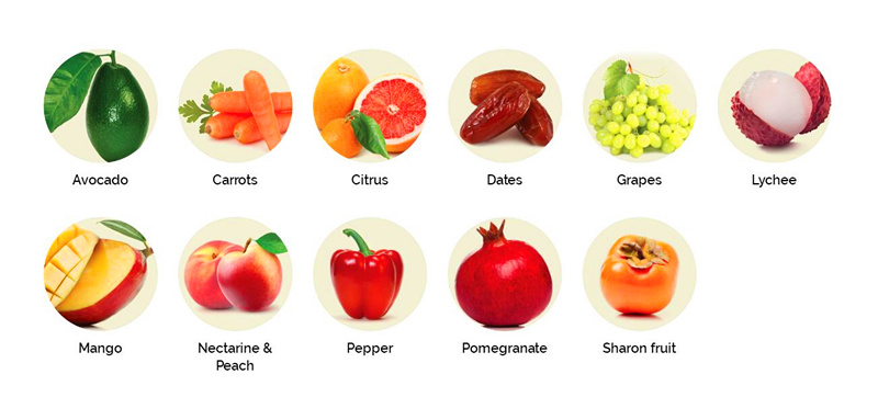Galilee Export 生产包括鳄梨、柿子(莎隆果)、胡萝卜、西柚、甘薯、荔枝、芒果、葡萄、辣椒、石榴、椰枣在内的各种蔬果产品。此外,Galilee Export 还拥有以色列最大的鳄梨、柑橘属水果、荔枝和其它水果的包装工厂。