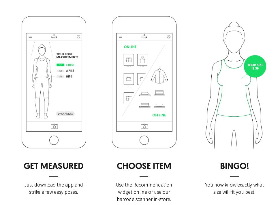 Sizer是一家给购物方式带来革命的时尚科技公司。Sizer移动测量应用及购物助手能帮助您做出正确选择!用准确的身体测量数据自信地网上购物!在一分钟内获得准确的身体测量数据!通过几个简单的姿势,Sizer的移动应用可更精确地测量您的身体。Sizer购物助手确保您知道每件衣物的正确尺寸,无须试衣!您可在网上或实体店内使用您个人的购物助手。Sizer可使衣服零售商向顾客提供店内及线上个性化的购物体验。Sizer会让购物者确定适合自己的尺寸,并让他们变得好看。Sizer的个人购物同伴将给您提供每件衣物精确的尺寸和搭配建议! Sizer专利的计算机视觉技术可将一组2D图片重建为一个3D物体(用户身体)。该革新性的技术已用于智能手机这一地球上使用最多的设备上。