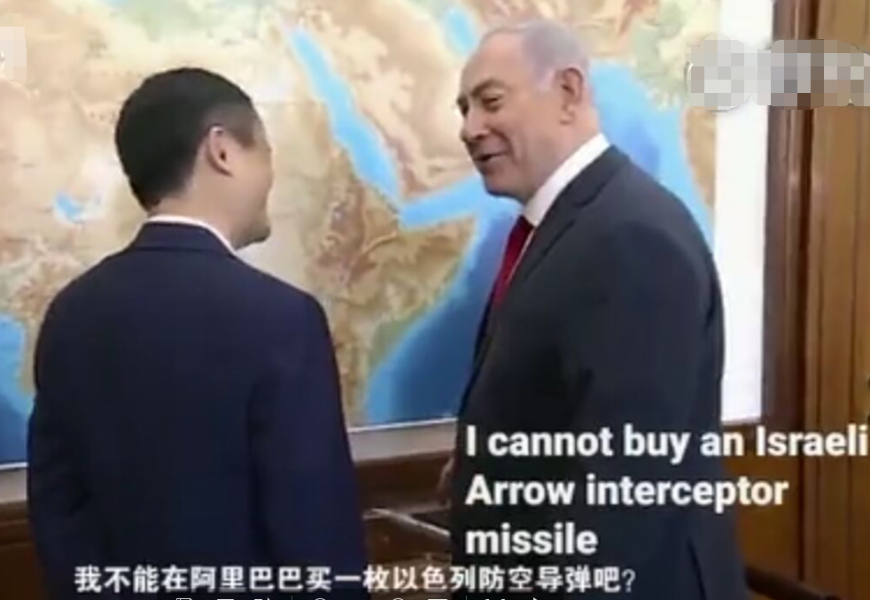 马云在以色列交流期间,与总理内塔尼亚胡进行了长达40多分钟的会晤。内塔尼亚胡问马云我们这导弹在淘宝上买不到吧?并向马云开始介绍起了以色列“箭3”防空导弹。“箭3”导弹是以色列多层次反导系统中的最外层,主要拦截射程在2000千米以上的大气层外弹道导弹。
