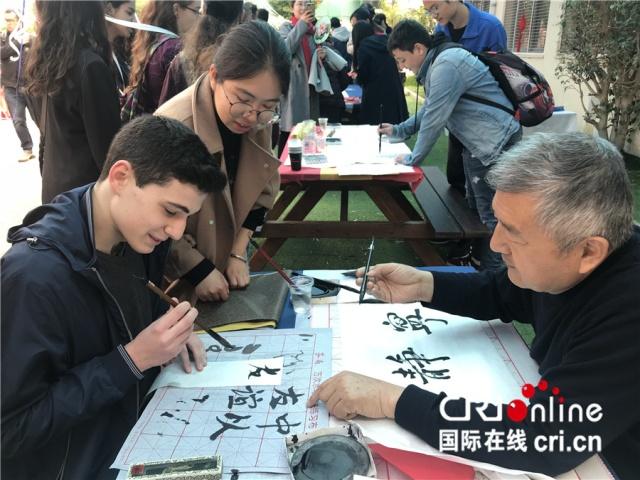 以色列中学生学书法。(摄影 孙伶俐)