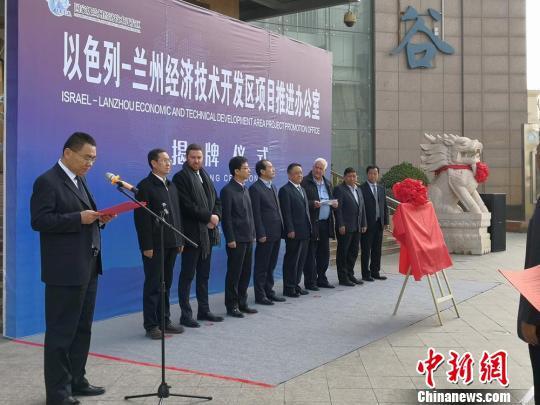 3月26日,以色列-兰州经济技术开发区项目推进办公室在兰州市安宁区揭牌。图为揭牌仪式现场。 杜萍 摄