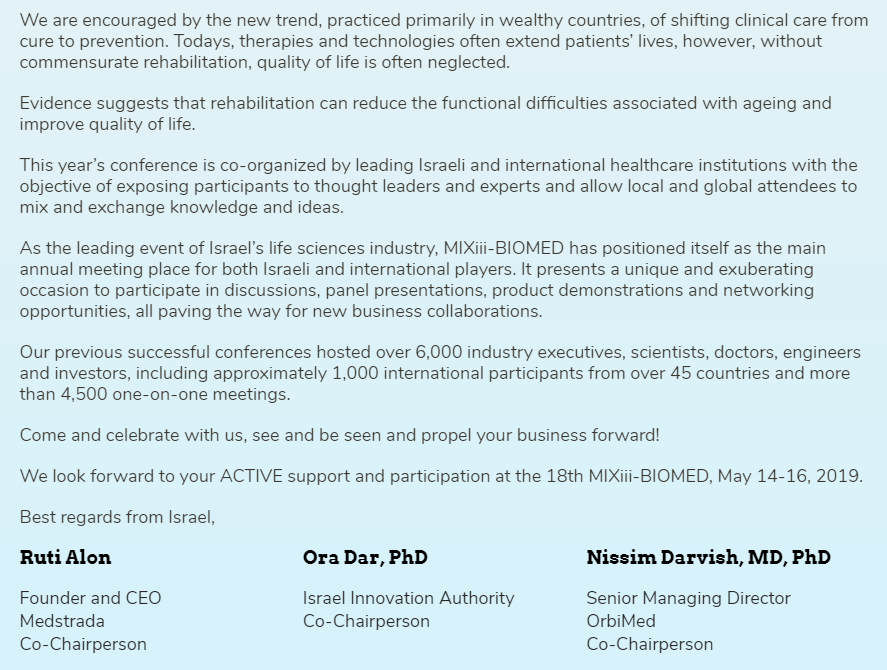 展会由以色列先进技术产业协会(IATI)主办,以色列本土数百家生物医药高科技公司参展,来自美国、中国、法国、意大利、瑞士等国的生物医药高科技公司及一批国际医药巨头携最新产品亮相展会。