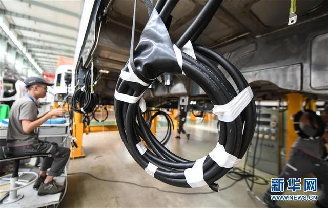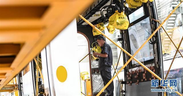 7月25日,中车长春轨道客车股份有限公司工人在车间内为以色列特拉维夫红线轻轨项目车辆接线。 新华社记者 王昊飞 摄