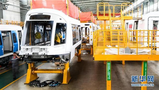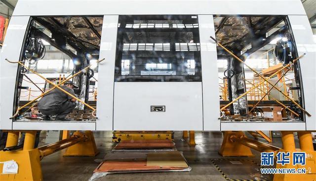 7月25日在中车长春轨道客车股份有限公司拍摄的正在制造的以色列特拉维夫红线轻轨列车。 新华社记者 王昊飞 摄