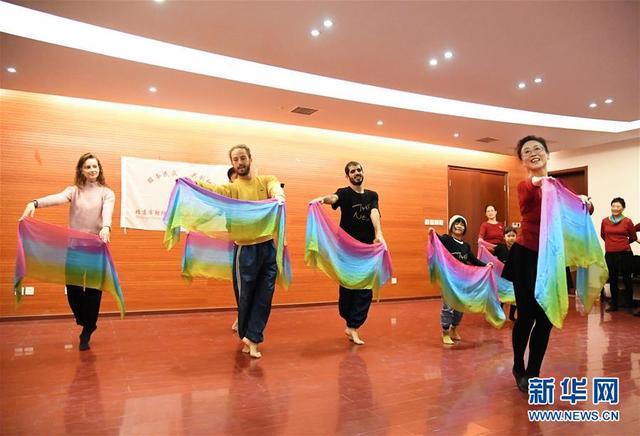 10月13日,社区舞蹈队的队员与来自以色列罗伊·阿瑟夫舞团的艺术家共同练习舞蹈。 当日,来自以色列罗伊·阿瑟夫舞团的艺术家们走进北京望京社区,在望京为民服务中心的舞蹈教室中与社区舞蹈队交流。 本次活动是第五届“北京新舞蹈国际艺术节”的组成部分之一,旨在建立社区居民与艺术家沟通感情、交流艺术的桥梁,丰富社区居民生活。 新华社发(任超摄)