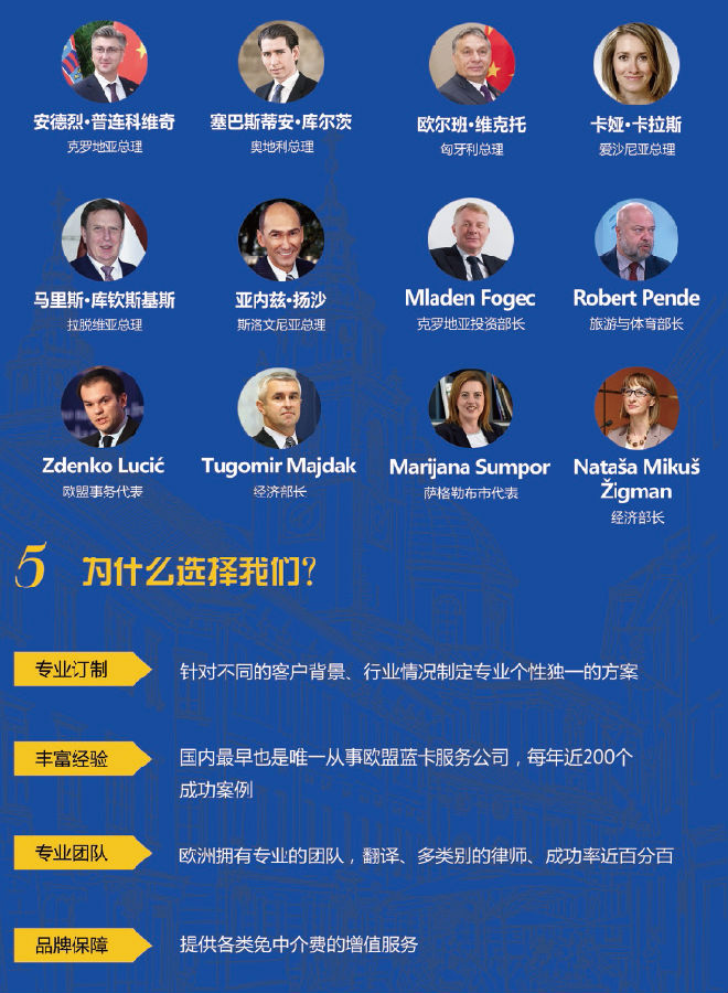 欧盟蓝卡是欧盟为了和美国、澳大利亚、新西兰国竞争海外人才推行的技术移民政策。给予申请人2年可续签的居留签证,5年后申请欧盟永居。其对申请人的主要要求是大学毕业,有雇主信。各国的要求有些许不同。目前接受申请欧盟蓝卡的国家有奥地利、捷克、爱沙尼亚、德国、保加利亚、匈牙利荷兰、斯洛伐克、克罗地亚等。