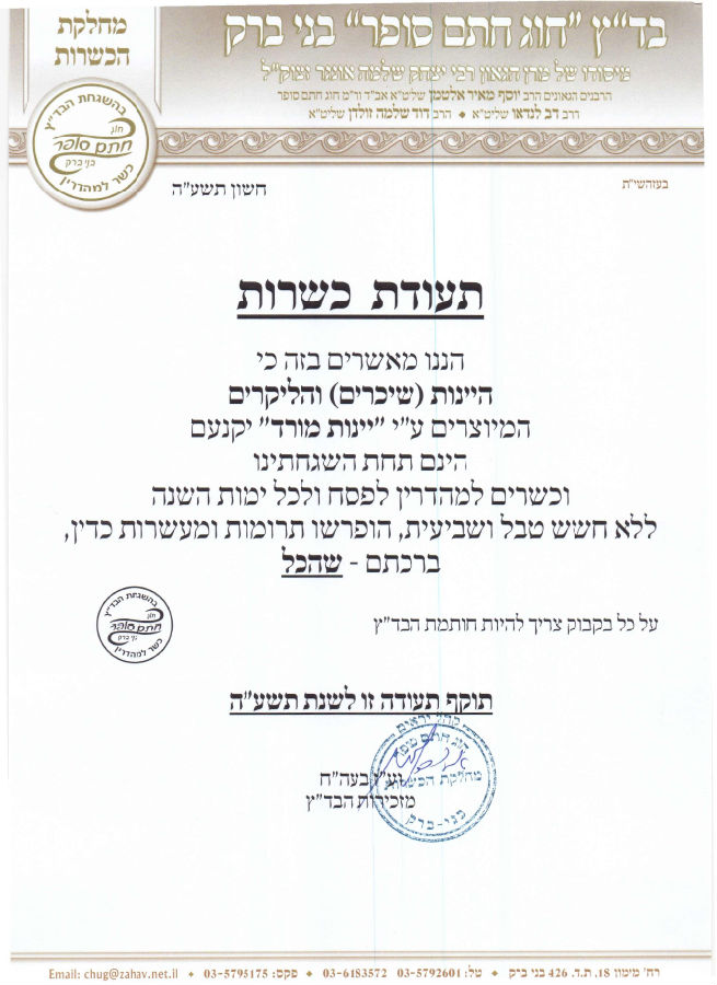 MORAD百香果酒获得”犹太洁净食品KOSHER认证”。犹太洁食认证是全球最高的食品安全认证之一,代表高品质和百分百纯天然。