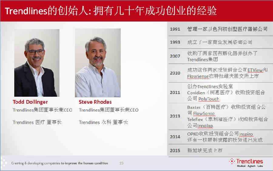 Trendlines 医疗器械团队(前身为 Misgav 创业加速器)与富有激情的发明家与投资者一道,创立了诸多以创新为己任的医疗器械公司致力于开发一系列具有创新性的医疗器械以及相关技术。这些产品与技术极大改善了患者的治疗效果,并大大降低了昂贵的医疗与保健费用。