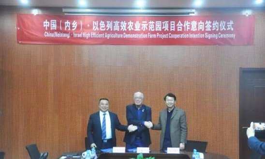 2016年10月9日,在距项目第一次考察论证不到五个月的时间里,内乡县政府与牧原合作成立的中以高效农业科技开发有限公司与索丽公司签署战略合作协议,达成战略合作关系;2017年1月9日,中国(内乡)·以色列高效农业科技创新合作示范园开工仪式成功举行,三方携手的高端设施农业项目正式在内乡“落地生根”。目前,该项目在以色列专家的指导和培训下,基础设施建设已经竣工。本次合作意向的签订,丰富了项目合作的范围和内容,进一步明确三方的责任和义务,三方也将共同组建中外合作企业,直接推动以色列高效农业科技示范园项目建设,加快引进以色列高效农业技术和管理经验的步伐。