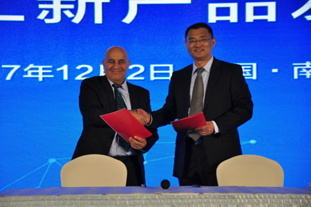以色列AWL董事长Zohar Ben Ner(左)、安徽朗坤物联网有限公司董事长(右)徐珍玉
