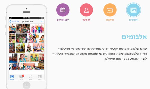 在GanBook上幼儿园老师可轻松快速和家长分享图片、消息、视频和事件。 老师能只用一个命令就和家长分享重要更新和新照片。 这款应用有如下特点: 家长能收到更新的信息; 分享的图片不占用家长移动设备的内存; 家长有权限控制; 这款应用已经被以色列教育部批准通过。