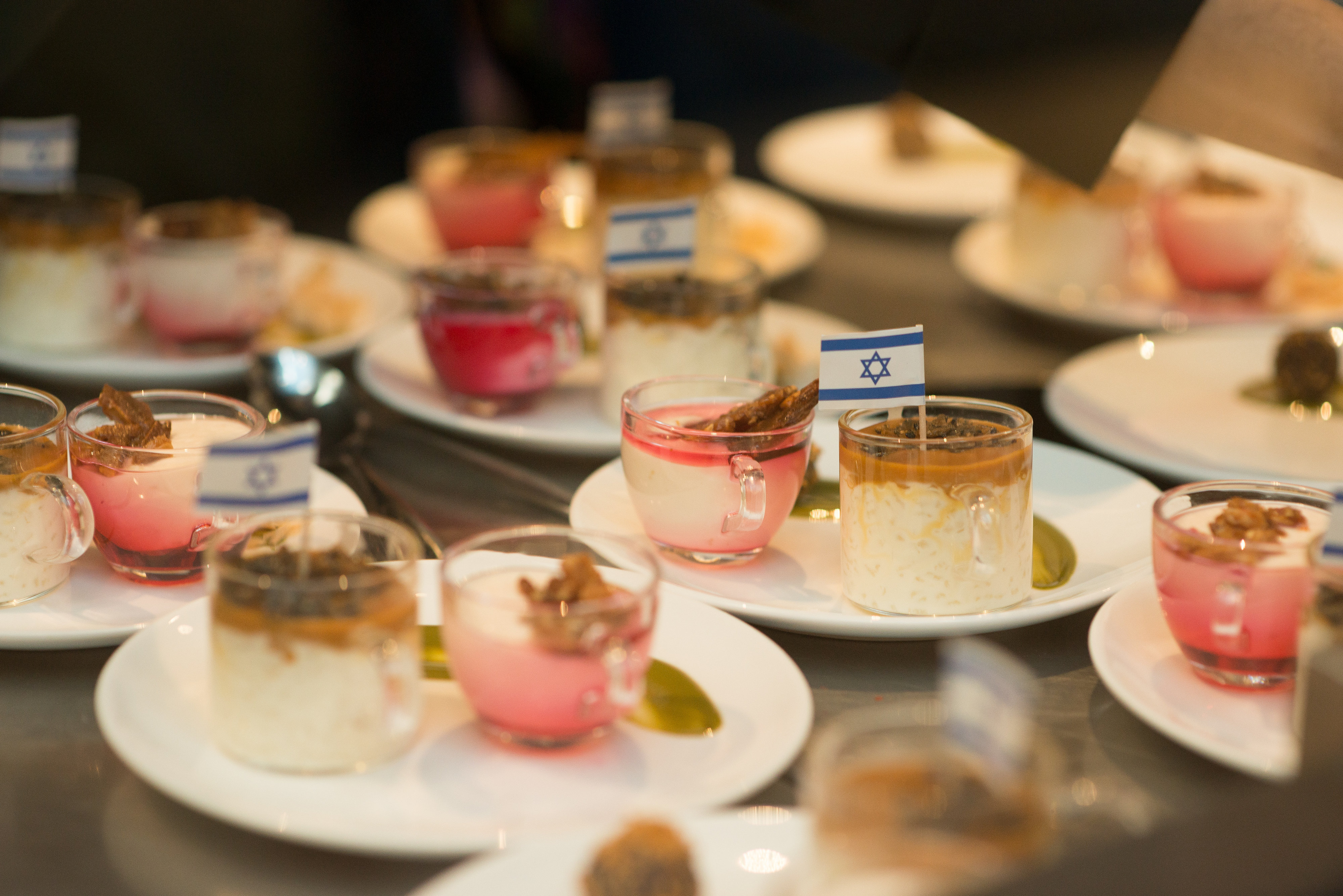 两位名厨带来了来自中国和以色列的特色美味佳肴。色香味俱全:手指鱼千丝面佐茄子、蒜辣海鱼,也有松露文丝豆腐、宫保鸡丁、等美味的中国菜。除了主菜外,还有可爱的迷你以色列传统布丁和中式玫瑰薄荷冰粉作为甜品,为晚餐画上了甜美的句号。