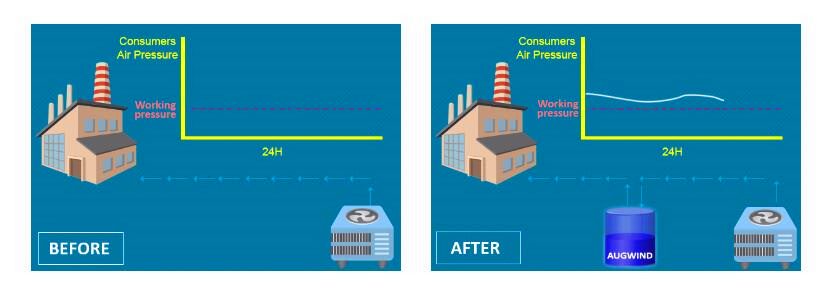 AugWind提供了突破性的科技,利用太阳能来增大间歇性的风能。 AugWind研发了一项技术,能够通过压缩空气储能系统调度风能,并使用太阳能来促进这一过程。 Augwind的一个核心组成部分就是其专利未决的独特的高压储罐,这一高压储罐是标准不锈钢储罐成本效率的20倍。 Augwind提供了一个完全压缩的气态能源,这一能源具有太阳能辅助系统,并集成有现有的风力涡轮。此系统的设计专用于提供持续稳定、并且从两种系统(太阳能与风能)中都可调度生产的能源。 这一独特的结合使Augwind技术和领域中相关的其他能源存储方案相比,具有更高的成本效率。