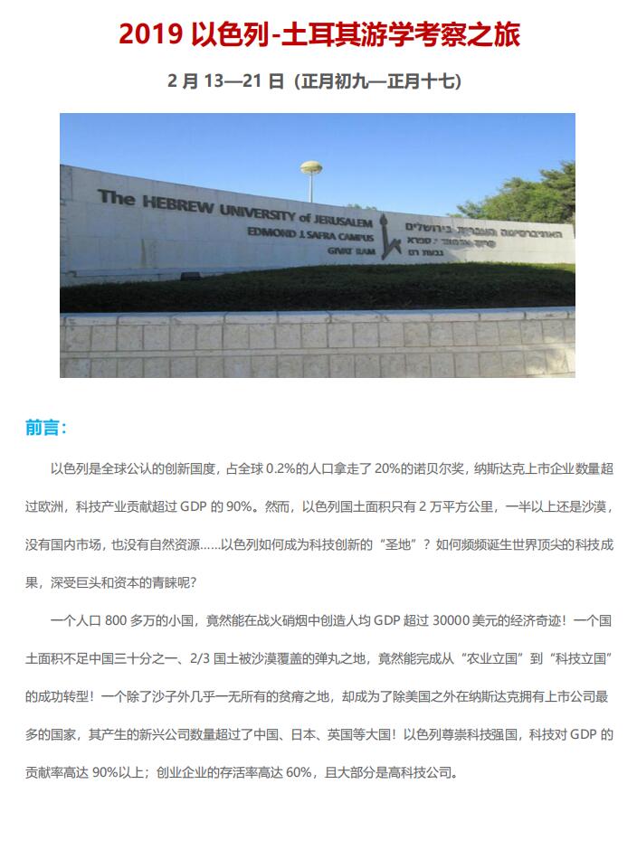 —— 以色列游学培训、商务考察专业提供商