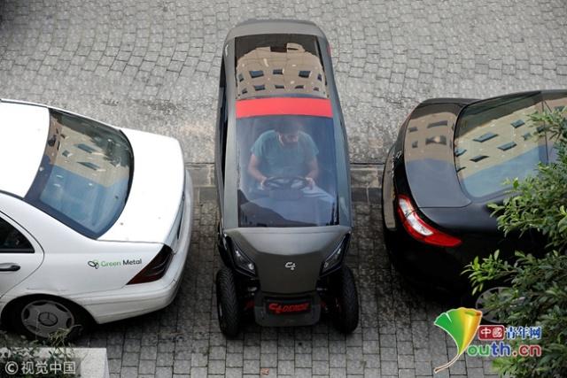 当地时间2018年11月20日,以色列Kfar Netter,以色列的City Transformer公司研发的微型电动汽车。据称这款微型电动汽车的底盘可折叠,可收纳所有的汽车部件。该公司的四辆汽车只占了一个停车位,该折叠式底盘已获得了技术专利。