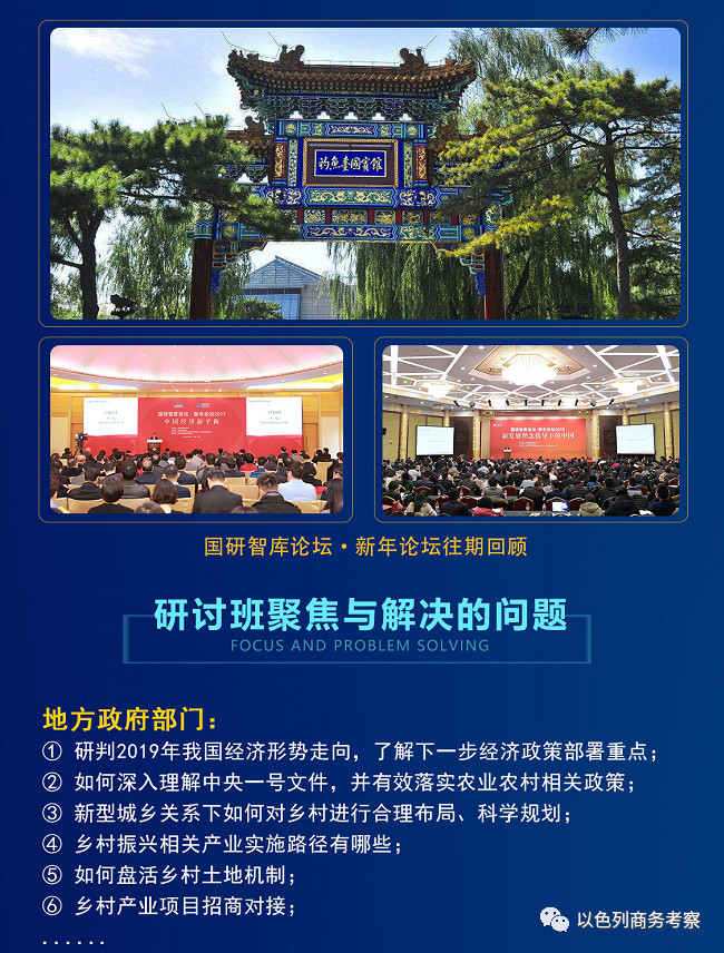 (1月18日-19日国研智库乡村振兴发展高级研讨班;1月20日可受邀参加”国研智库论坛·第五届新年论坛2019“,地点:北京钓鱼台国宾馆)