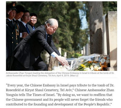 2019年8月12日,《以色列时报》网站刊登驻以色列大使詹永新就犹太国际主义战士罗生特事迹及中犹友谊接受该报书面采访,全文如下: