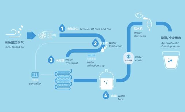 除民用设备外,该公司还生产工业级别制水设备,每天可以供应5000升的饮用水,可为3000至5000人提供终身用水(每人每日1升),造水价格在0.14元至0.28元每升。