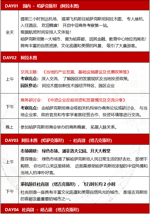 详细了解工业园区招商政策、土地使用、用工、税收等,深入挖掘中亚市场。